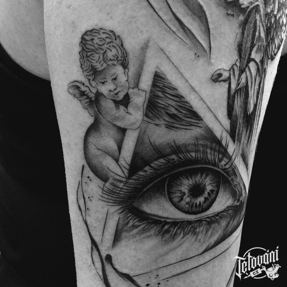 Tetování boží oko, anděl na paži
