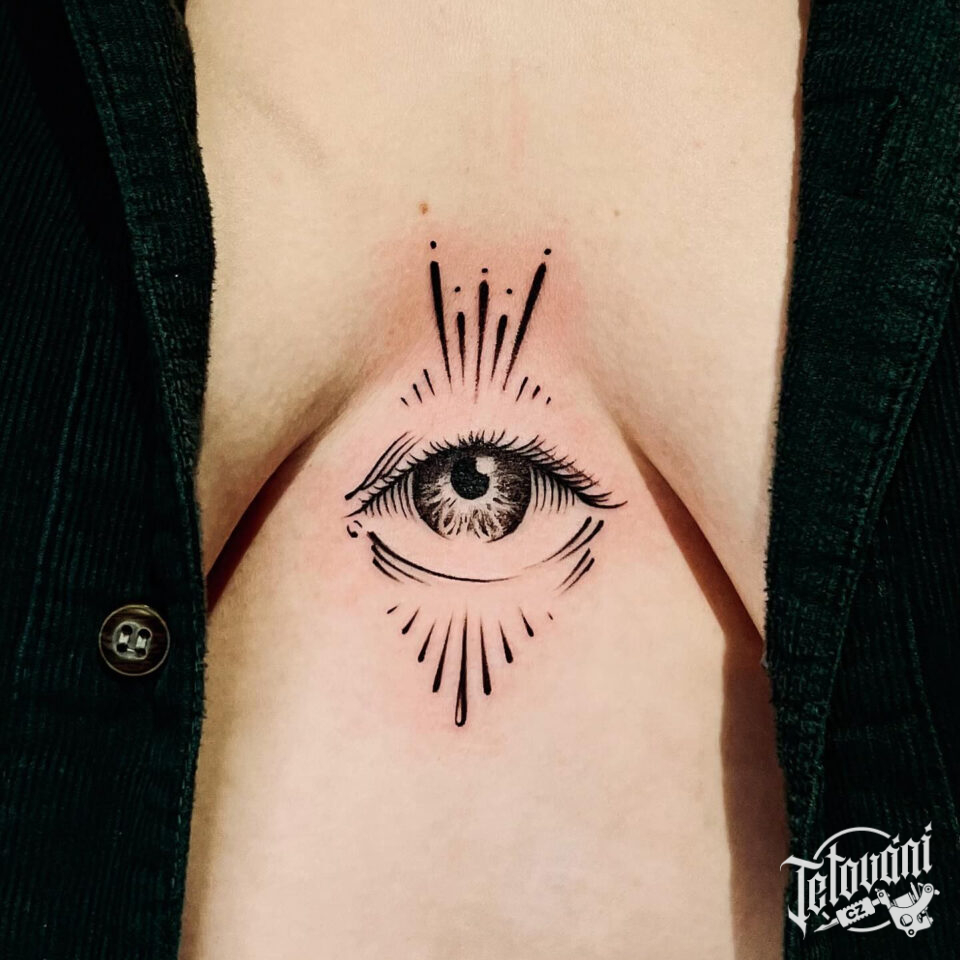 Tetování boží oko mezi prsa