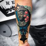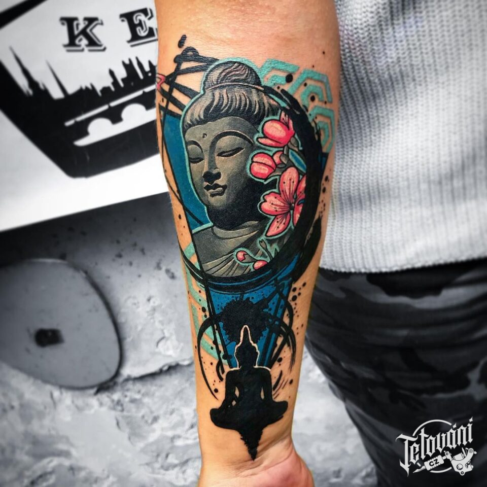 Tetování Buddha, květy Lilie, tvary na předloktí