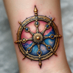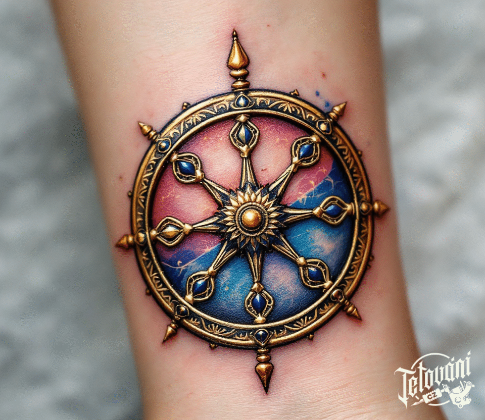 Tetování buddhistické znaky a symboly, předměty, kormidlo na předloktí
