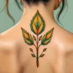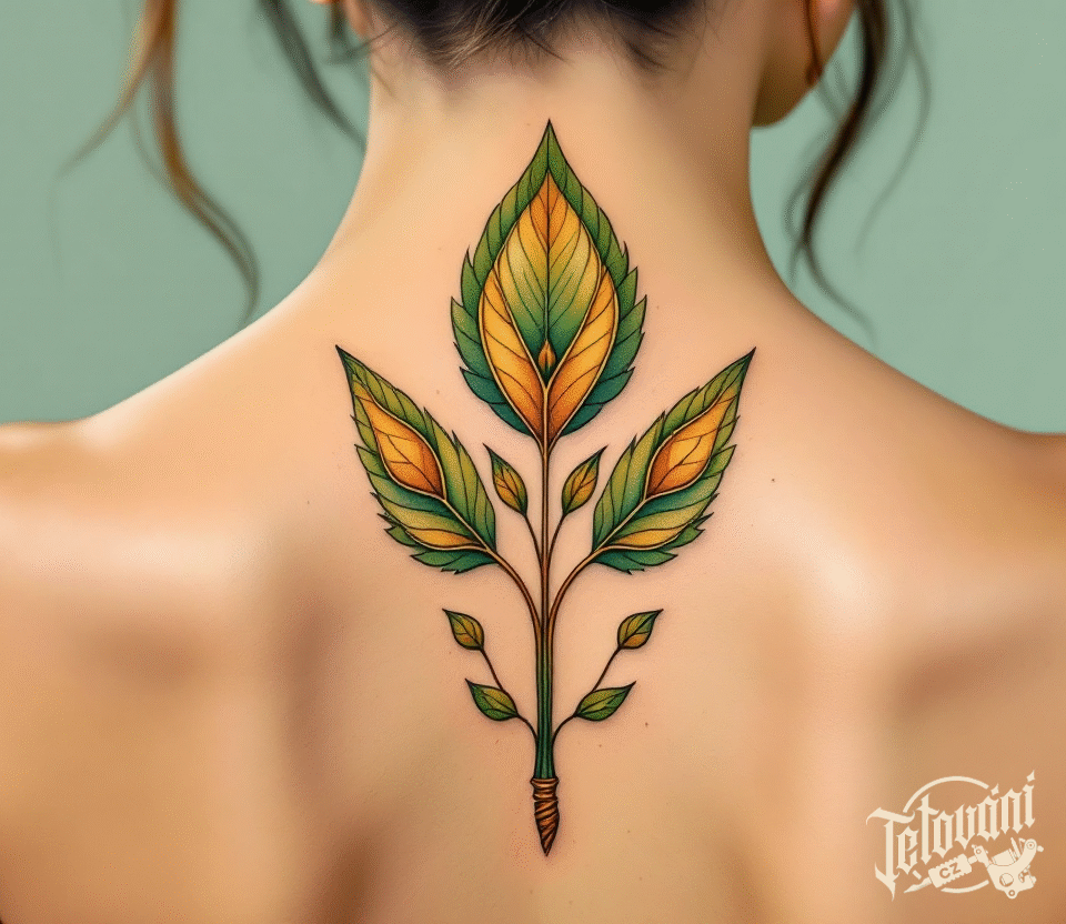 Tetování buddhistické znaky a symboly, větvička mezi lopatky