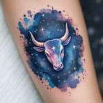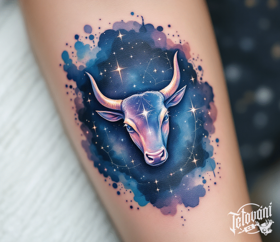 Tetování býk souhvězdí a znamení zvěrokruhu, hlava býka na předloktí