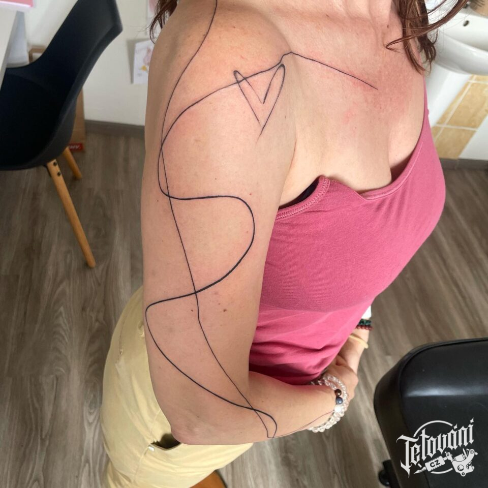 Tetování čára a srdce na rameno