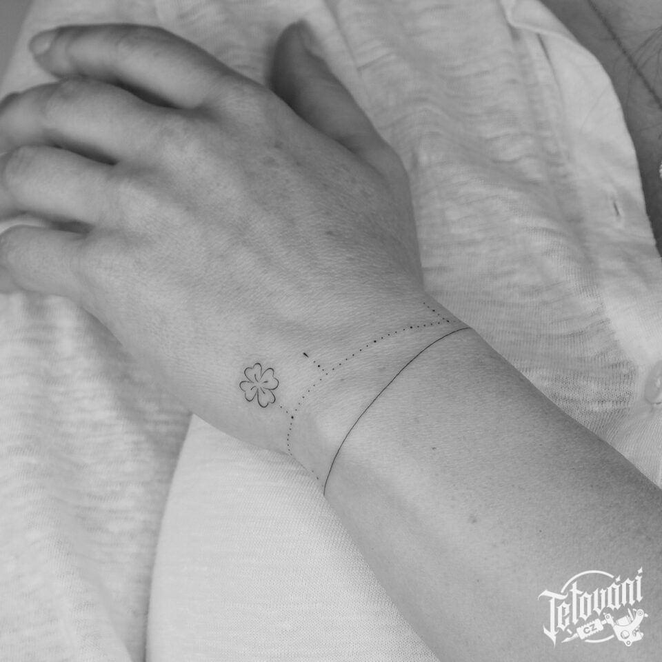 Tetování čára, čtyřlístek, tečky, náramky kolem ruky na zápěstí