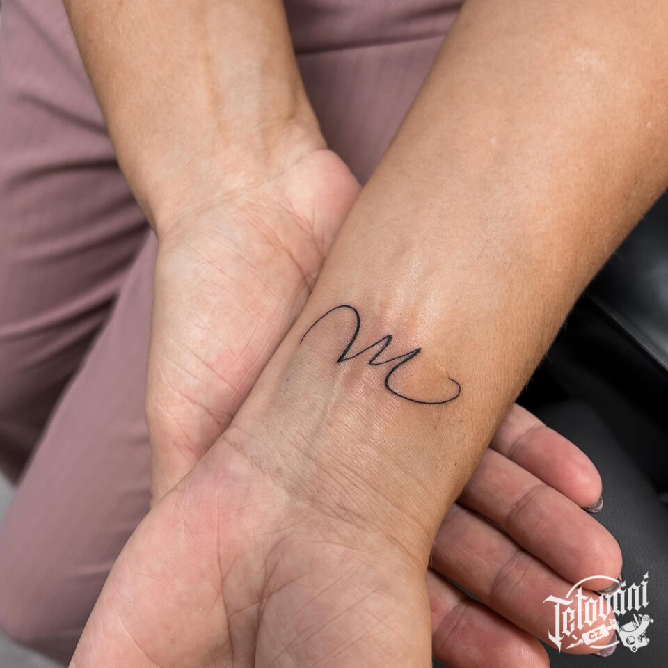 Tetování čára, nápis na zápěstí
