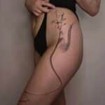 Tetování čára, větvička na boku stehna