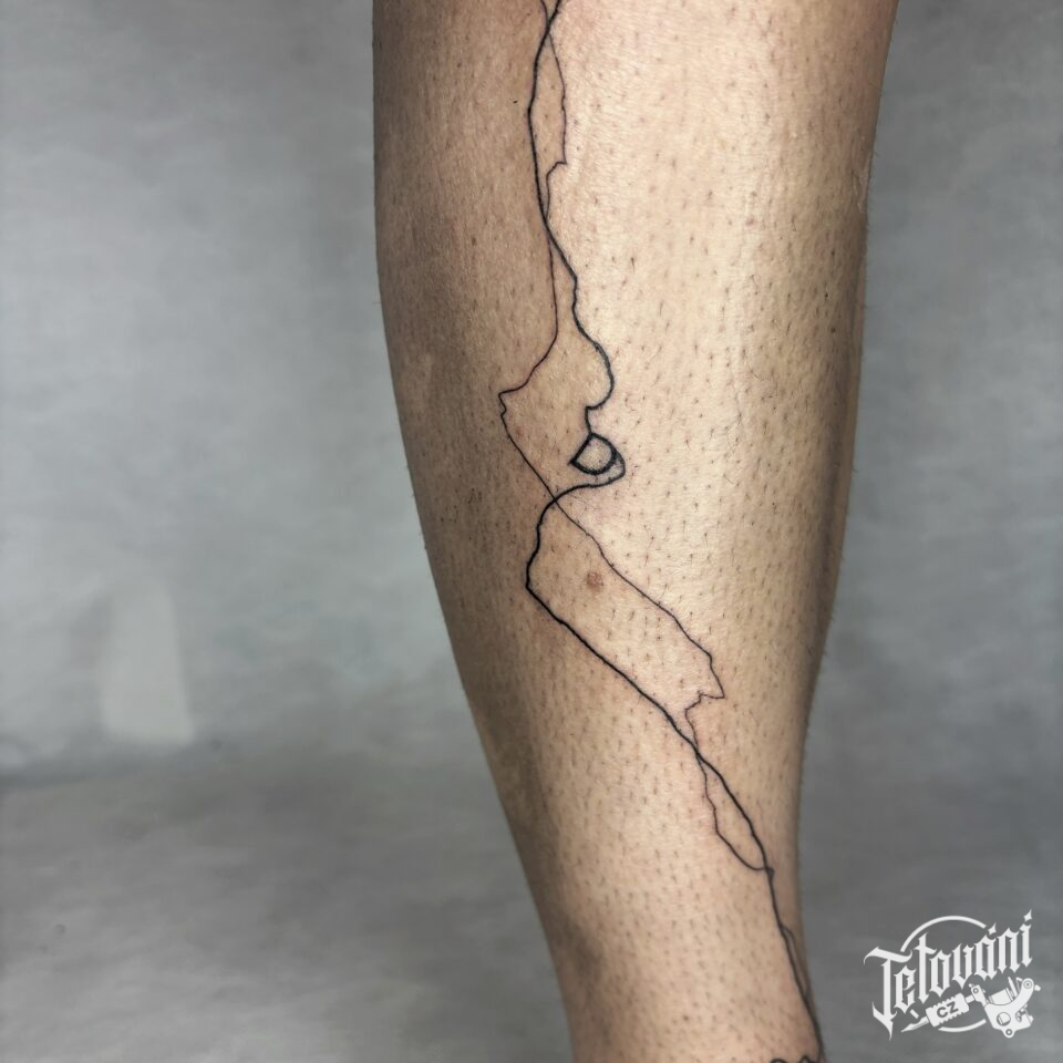 Tetování čára života na holeň