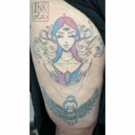 Tetování čarodějka na stehně