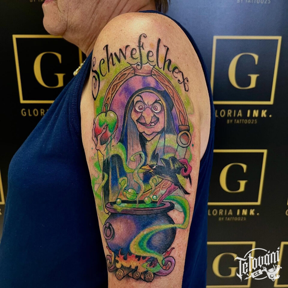 Tetování čarodějnice, z filmů a pohádek Sněhurka na rameno