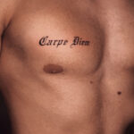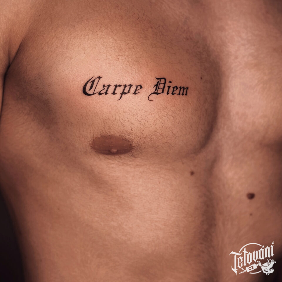 Tetování carpe diem na prsa