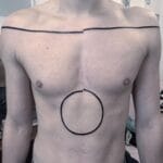 Tetování čáry a kruh na hrudi