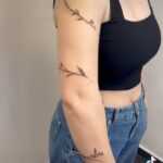 Tetování čáry a květiny na rukávu