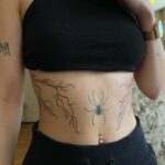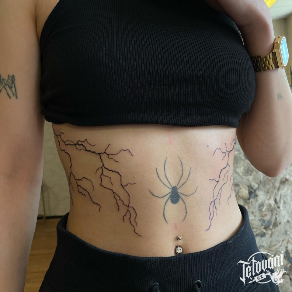 Tetování čáry a pavouk na břichu