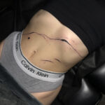 Tetování čáry a srdíčko na břichu