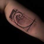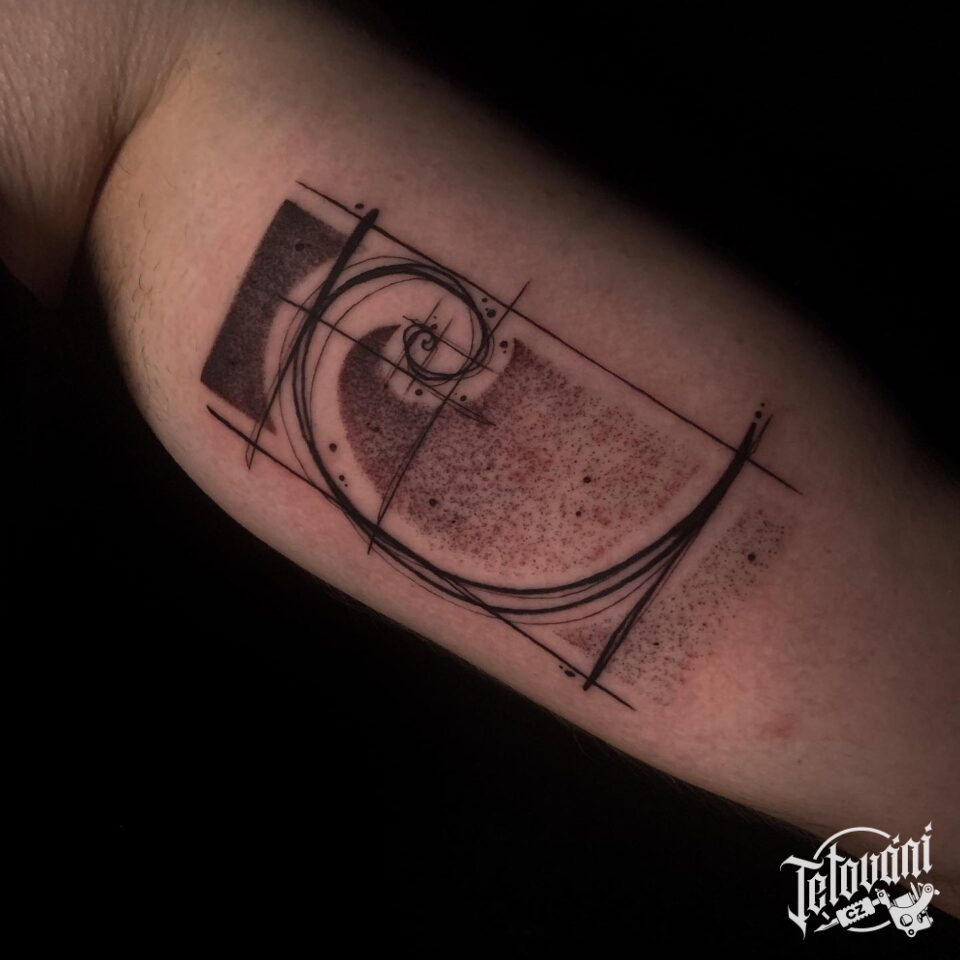 Tetování čáry a tvary na bicepsu