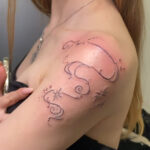 Tetování čáry, hvězdy, tečky na rameni
