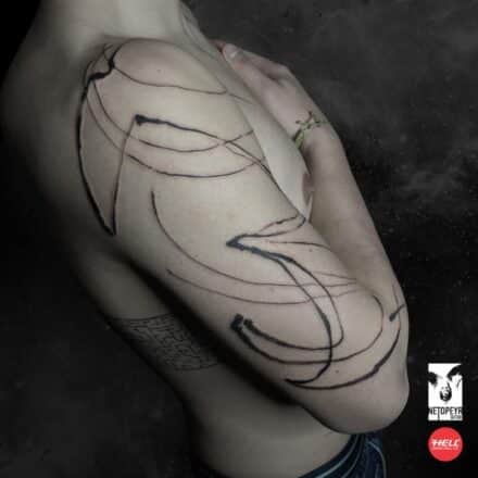 Tetování čáry, květiny na rukávu