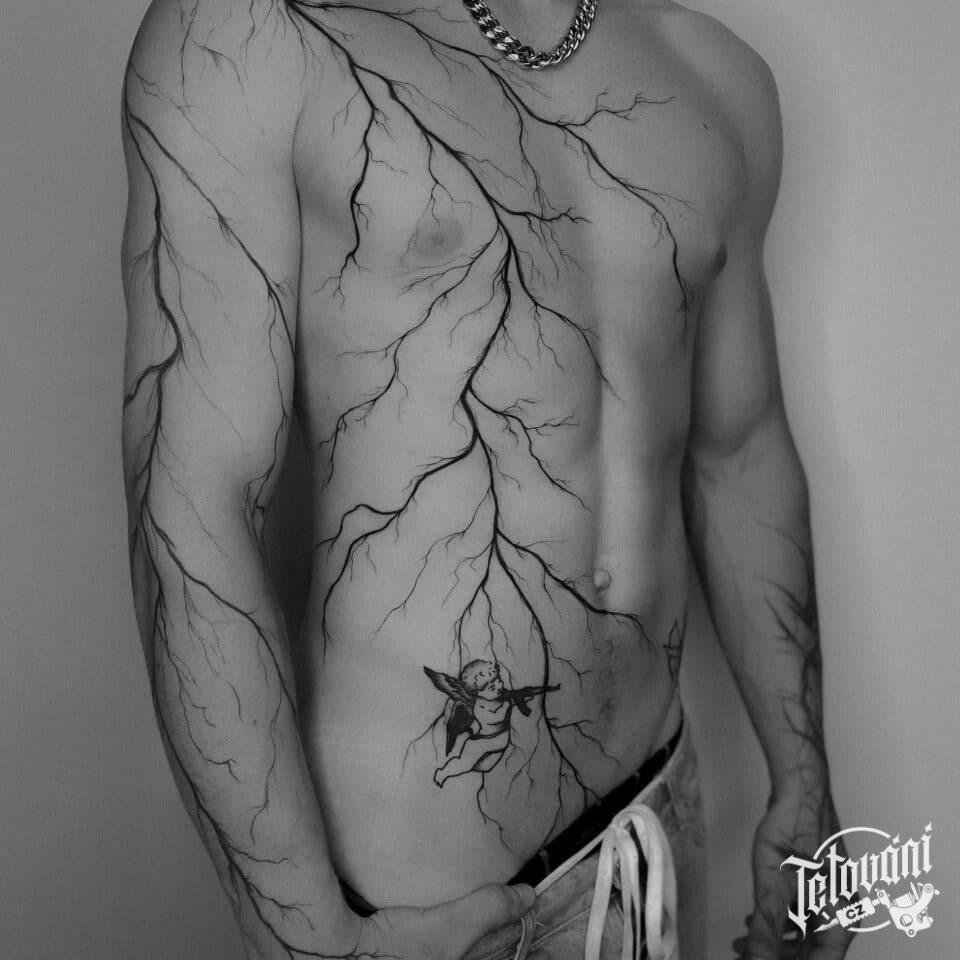Tetování čáry na břicho a ruku