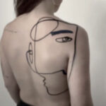 Tetování čáry, oko, portrét na zádech