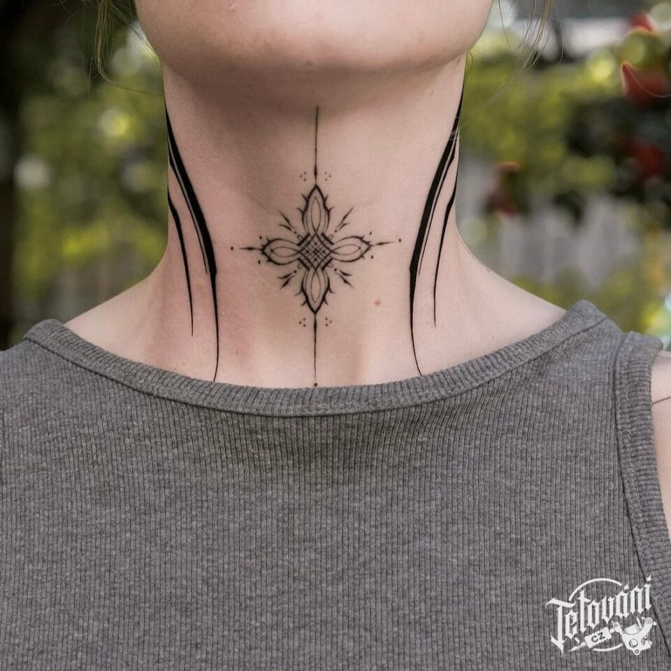 Tetování čáry, ornament na krku
