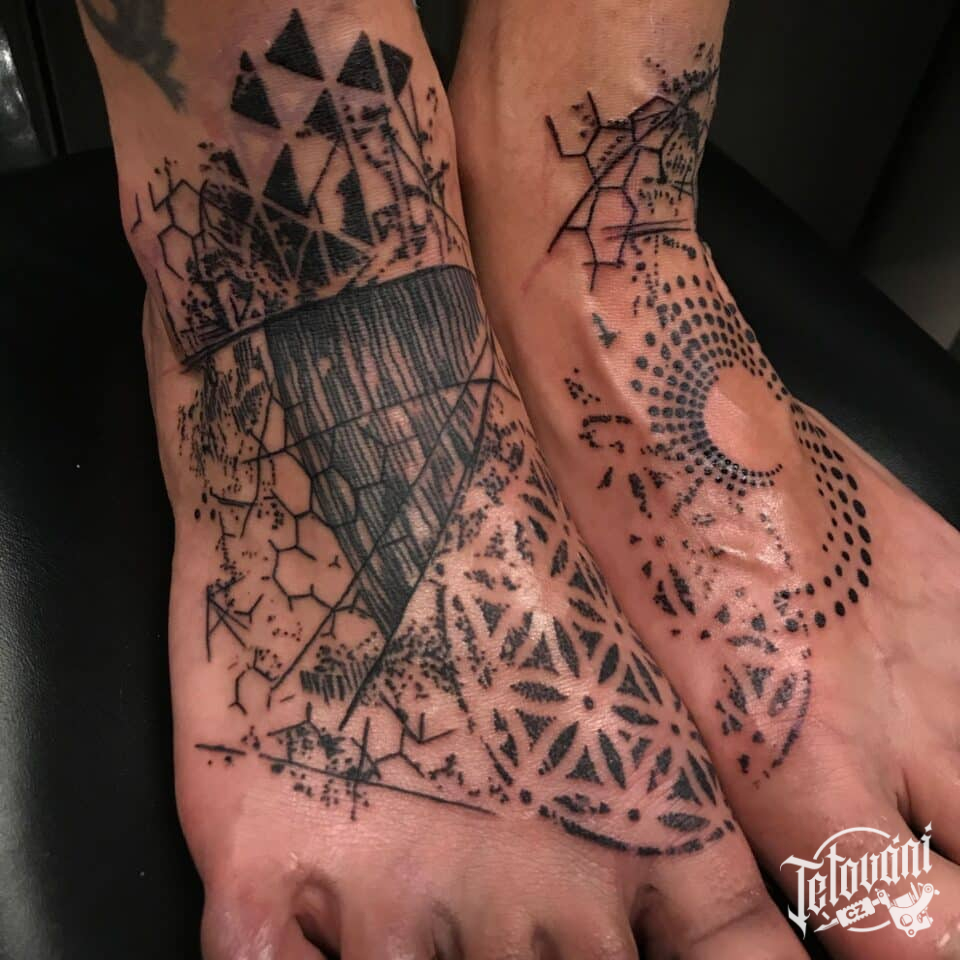 Tetování čáry, ornamenty na nártech