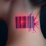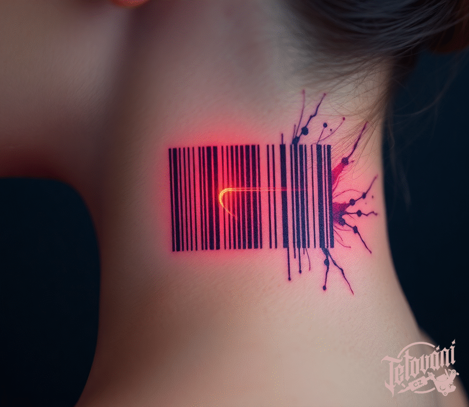 Tetování čáry, pruhy, abstraktní čárový kód na krku