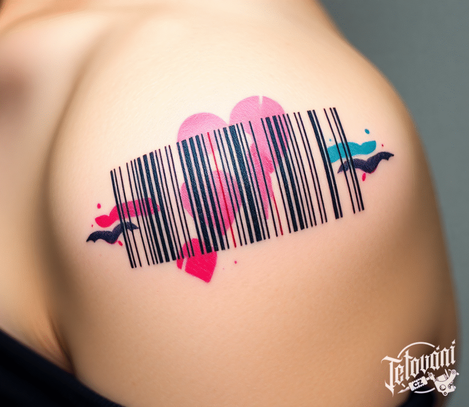 Tetování čáry, pruhy, čárový kód na rameni