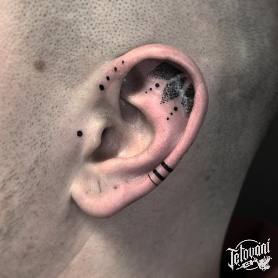 Tetování čáry, pruhy, ornamenty na uchu