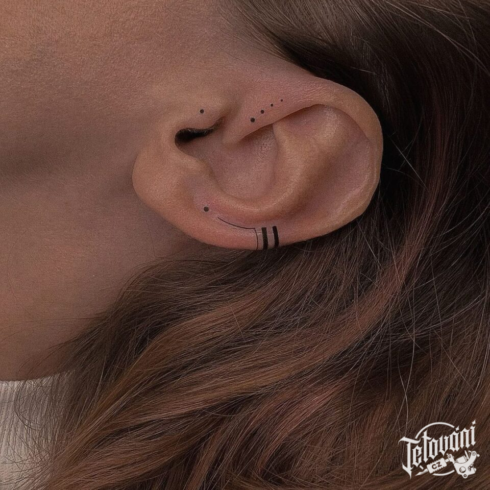 Tetování čáry, pruhy, tečky na uchu