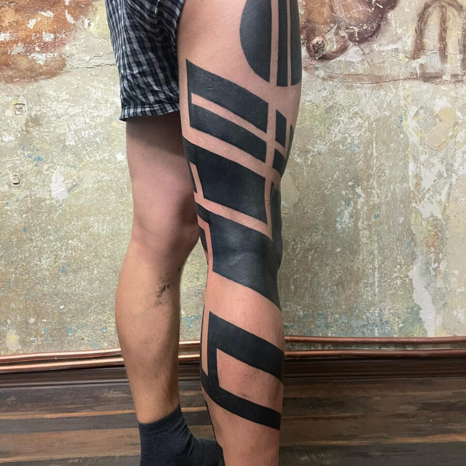 Tetování čáry, pruhy, tvary na noze