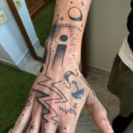 Tetování čáry, pruhy, znaky a symboly na zápěstí