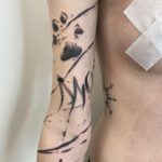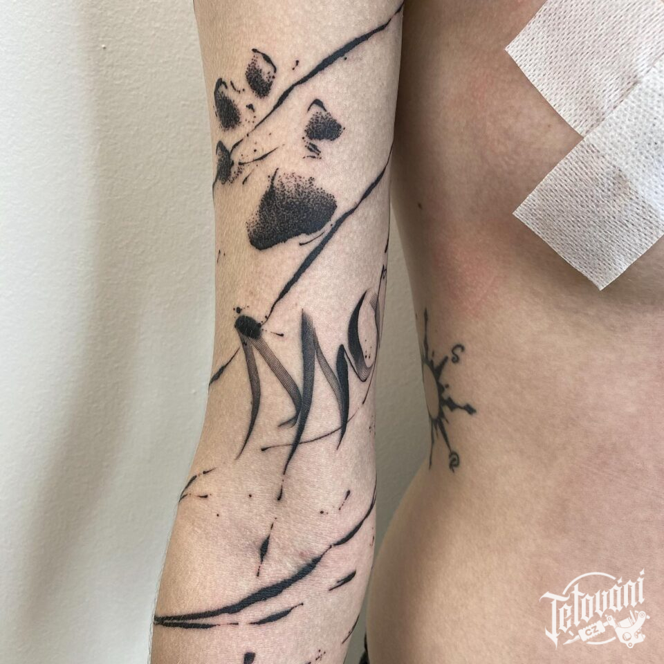 Tetování čáry, psí tlapka, nápisy na předloktí