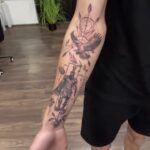 Tetování čáry, sparťanský bojovník, orel, nápisy na předloktí