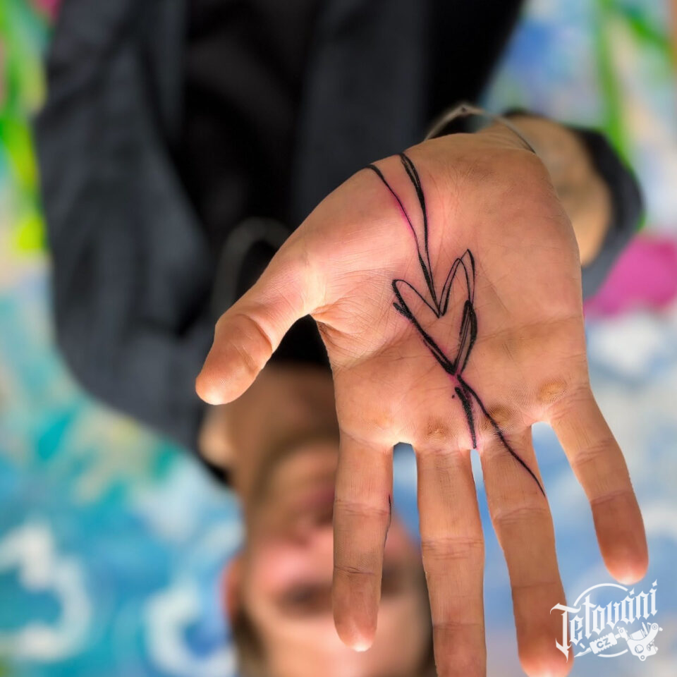 Tetování čáry, srdce na dlani