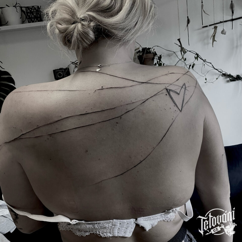 Tetování čáry, srdce na zádech
