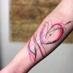 Tetování čáry, srdce, nápisy na předloktí