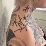 Tetování čáry, větvičky na krku a na rameni