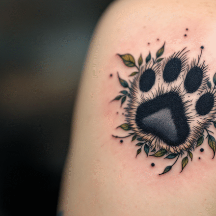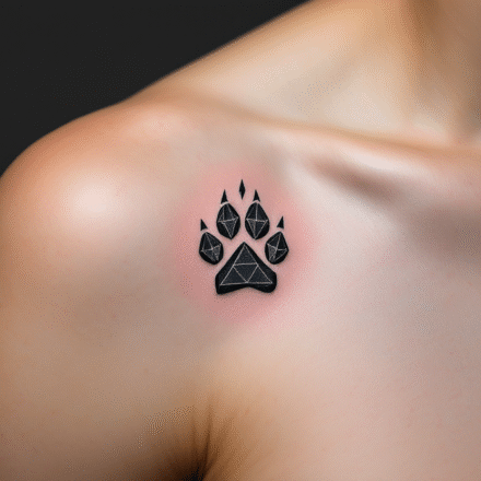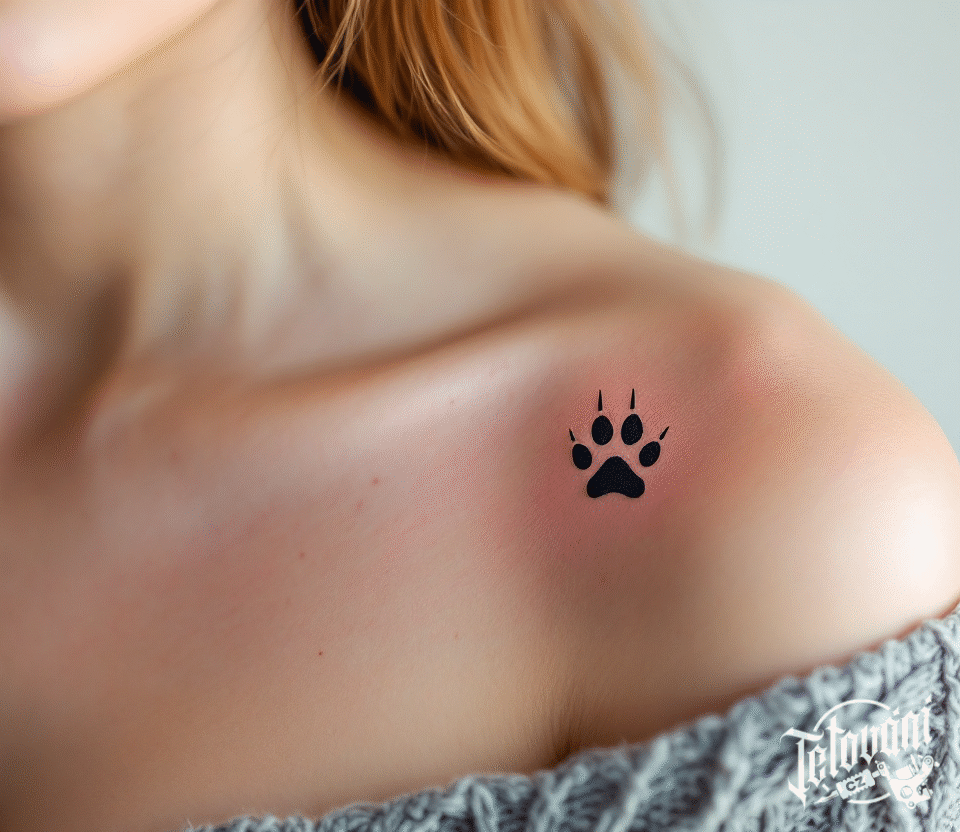 Tetování černá packa pod klíční kostí