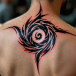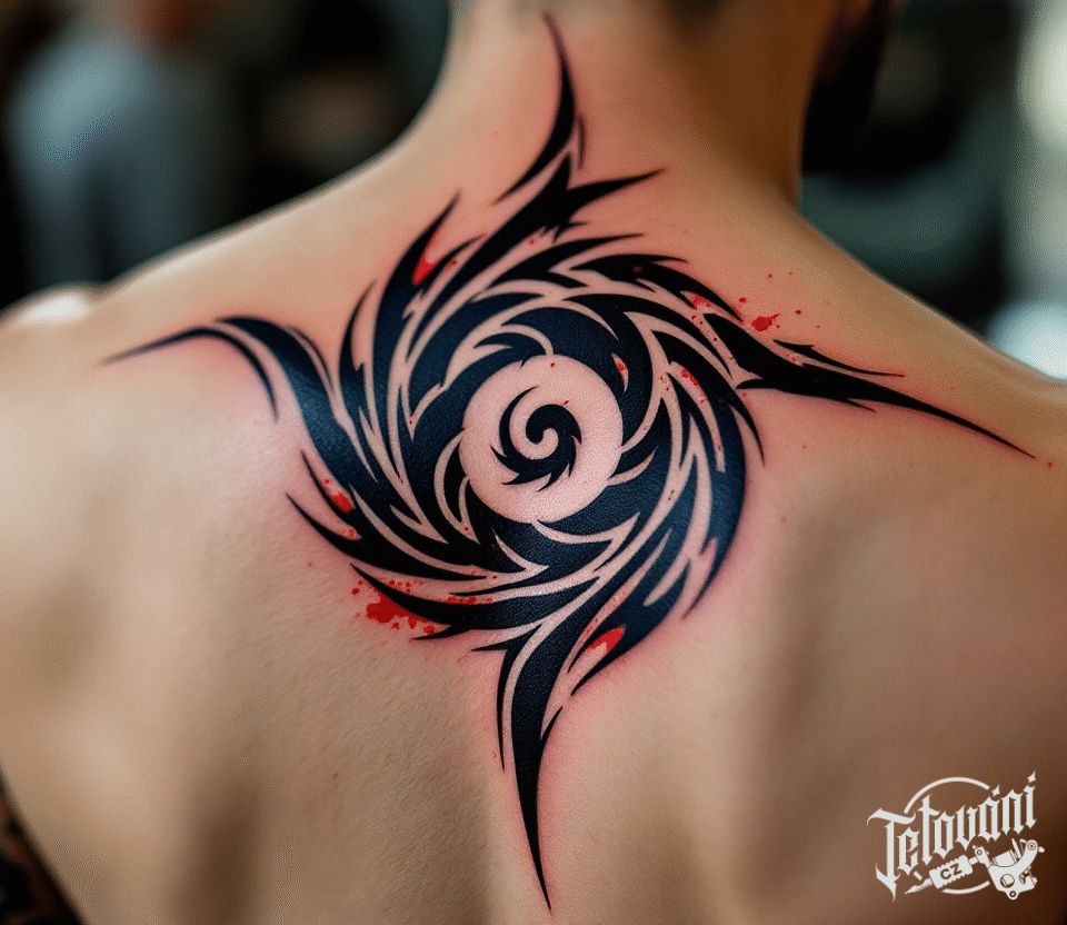 Tetování černá spirála mezi lopatkami