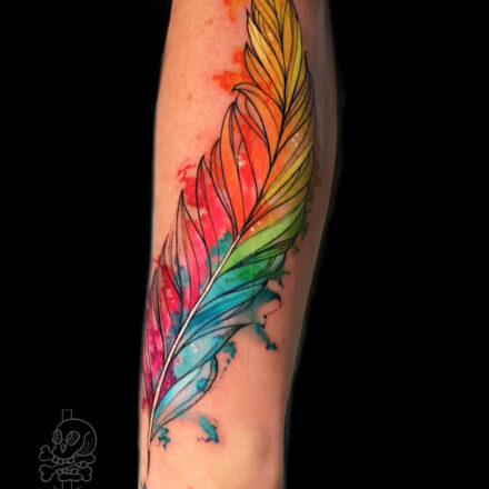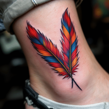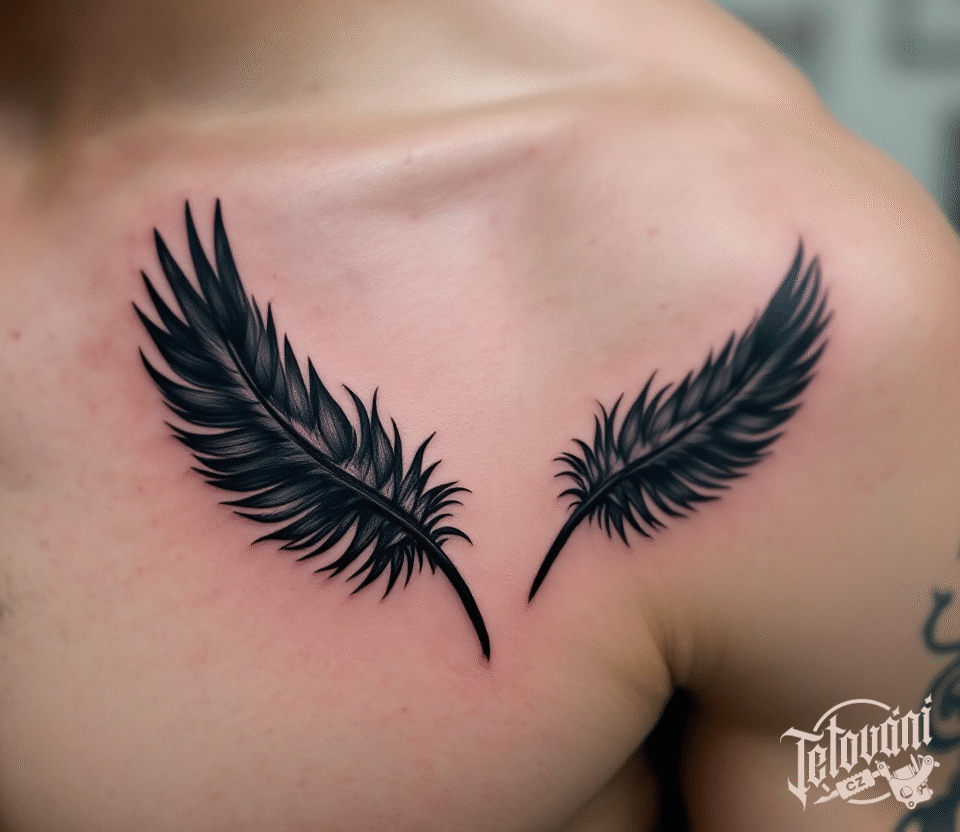 Tetování černé peří na prso