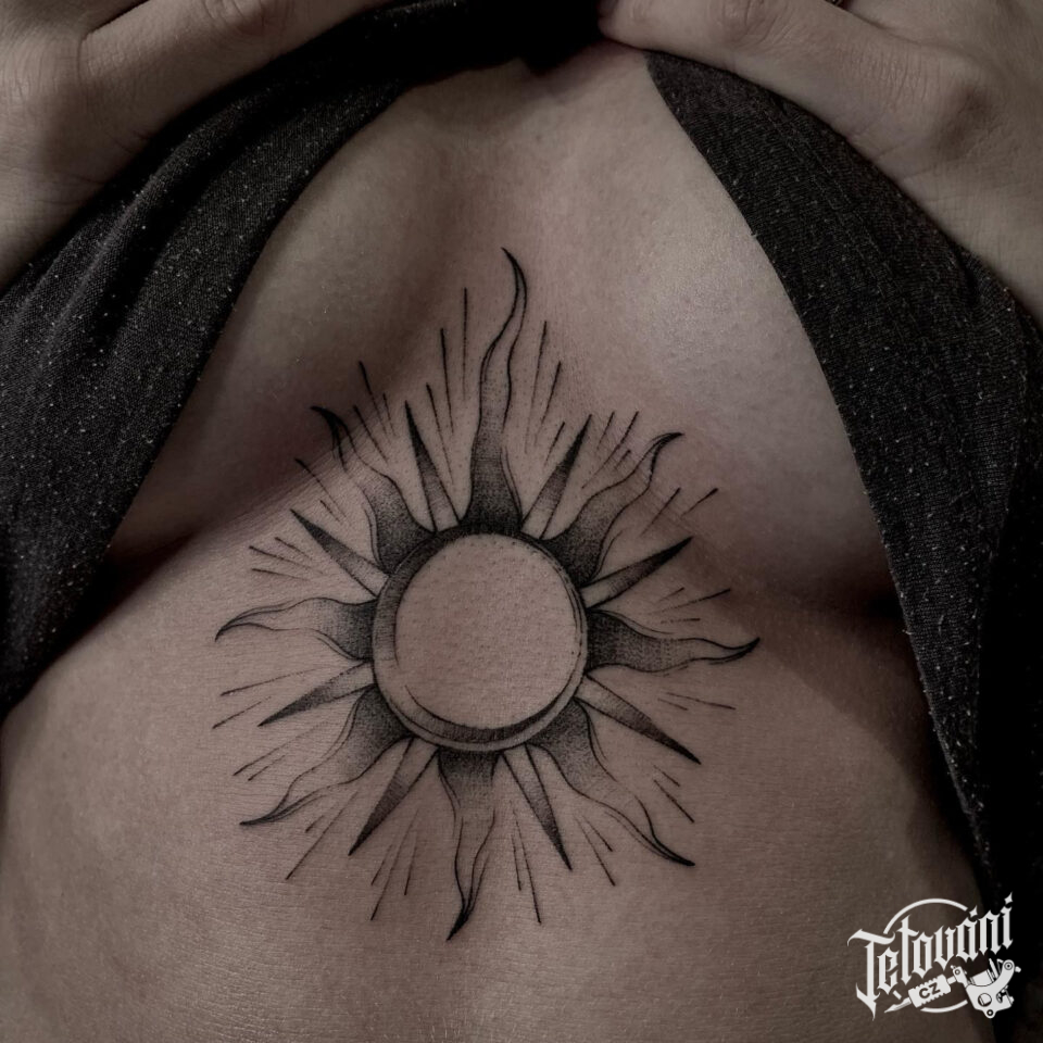 Tetování černé Slunce na břichu