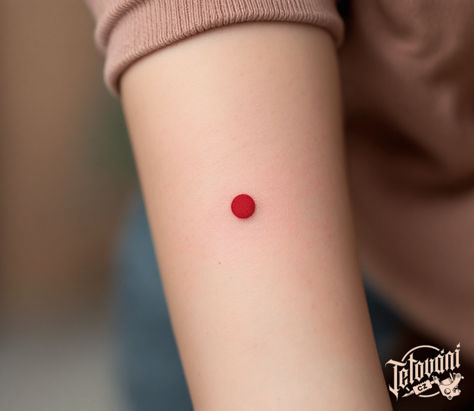 Tetování červená tečka na předloktí