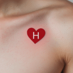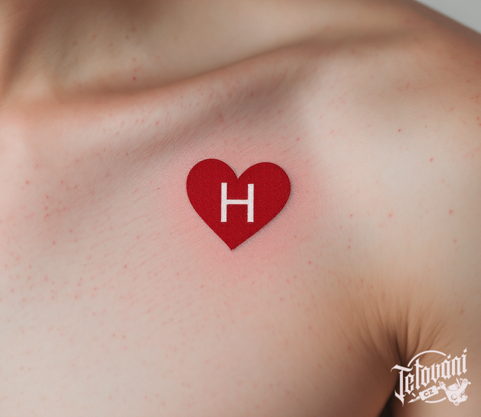 Tetování červené srdce, srdce s písmenem pod klíční kost