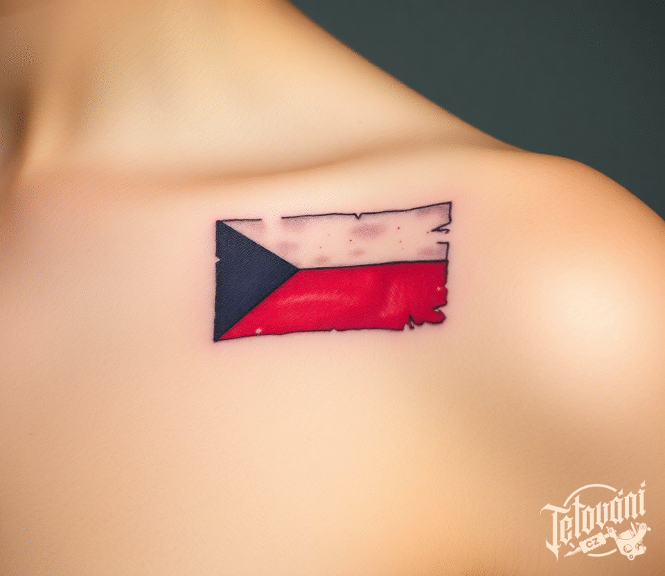 Tetování česká vlajka pod klíční kostí