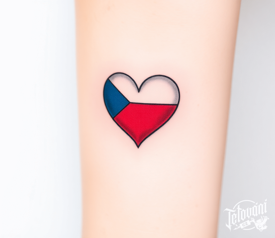 Tetování česká vlajka ve tvaru srdce na předloktí