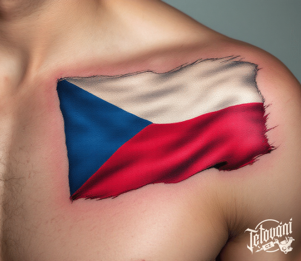 Tetování české, české vlastenecké, česká vlajka na hrudník