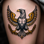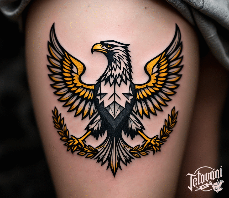 Tetování české, ptáci, slezská orlice na stehně