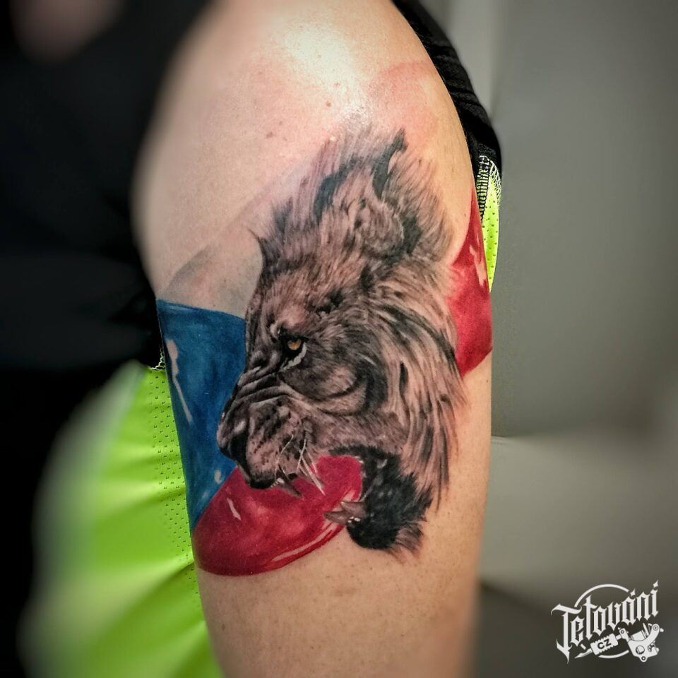 Tetování české tetování, česká vlajka, vlastenecké na rameno