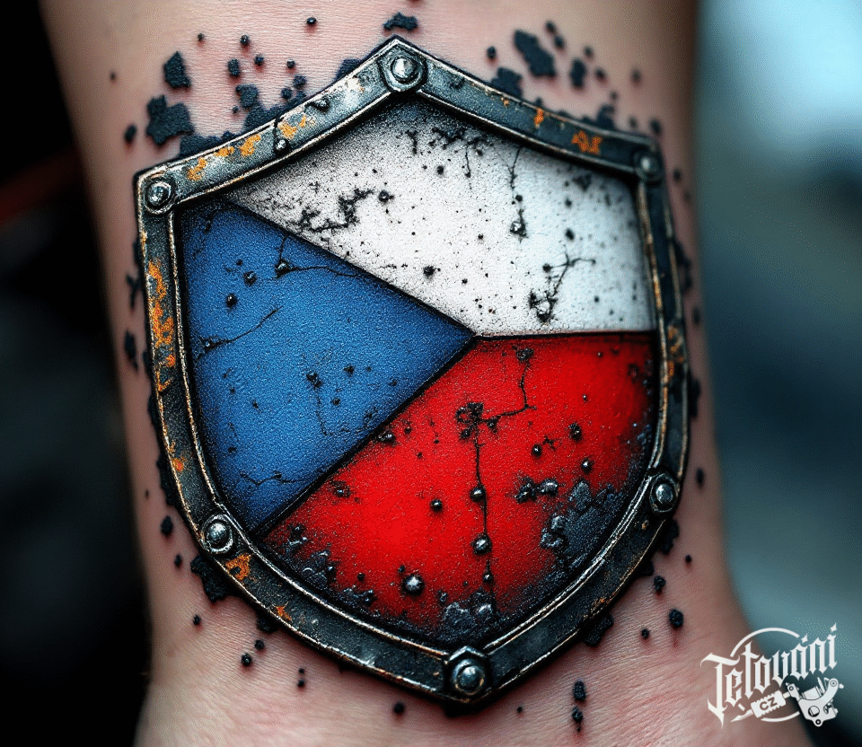 Tetování české vlastenecké, české tetování, česká vlajka a znaky a symboly, erb na zápěstí