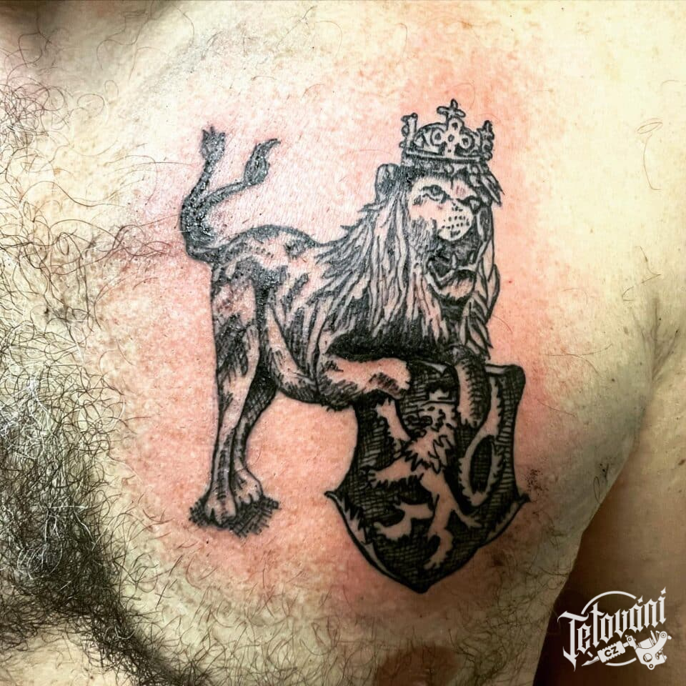 Tetování český lev na prso